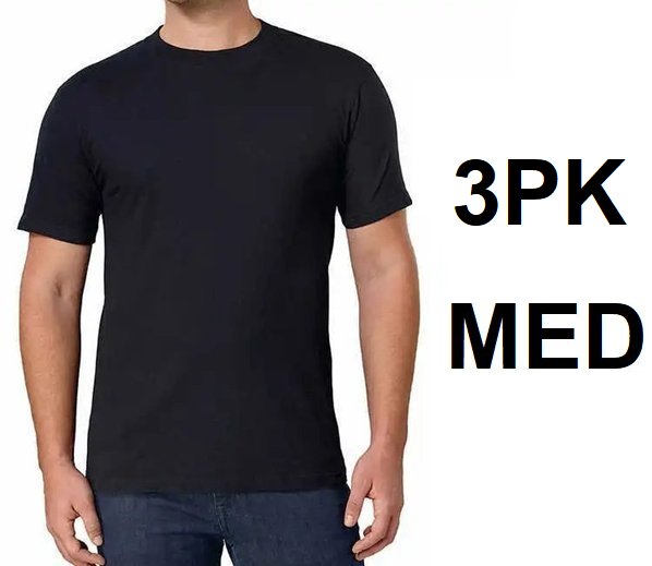 3PK men's Kirkland 100% Cotton Crew Neck T-shirt - MEDIUM - black (STYLE: 7771717)