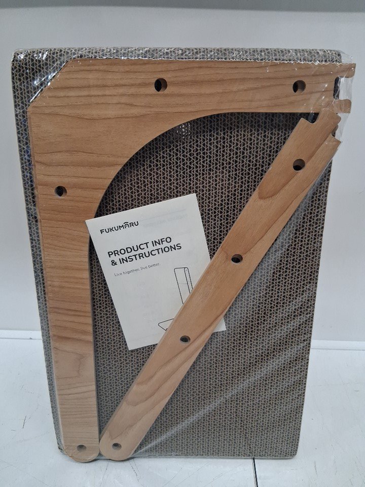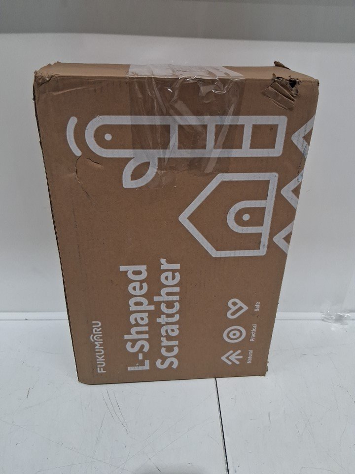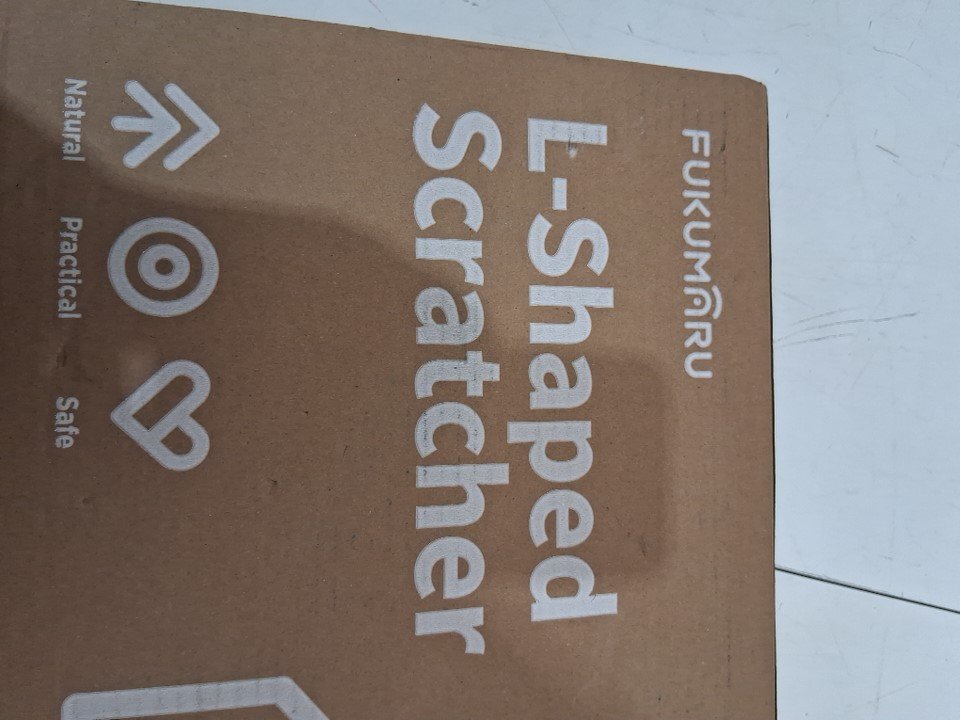 fukumaru l-shaped cardboard cat scratcher for indoor cats with ball toy - 26.7" - brown (MODEL: zj03052)
