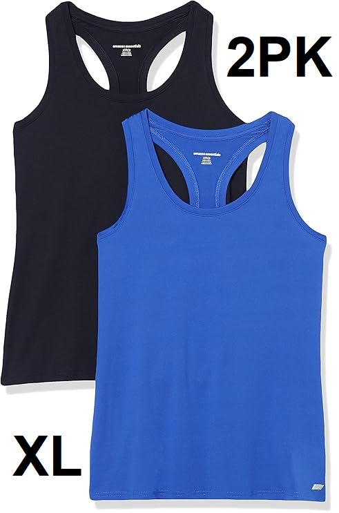 2PK Womens Amazon Essentials Tech Stretch Racerback Tank Top - EXTRA large - BLACK/blue (STYLE: AZ0003)