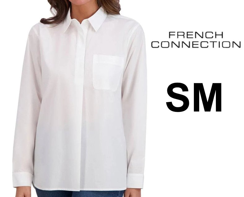 WOMEN'S FRENCH CONNECTION Henley Blouse - SMALL - WHITE (STYLE:1869645)