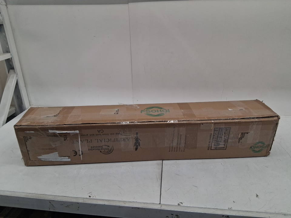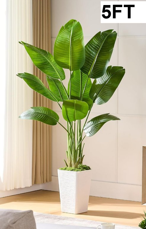 fsohoi artificial Birds of Paradise faux banana leaf tree plant WITH WHITE POT - 5ft - green/black (model: lrj-5ft)