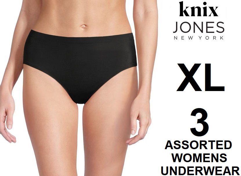 3 assorted womens underwear - extra large - knix, jones new york - assorted styles and colours