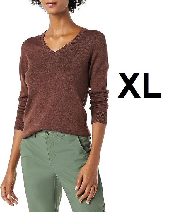 women's amazon essentials LIGHTWEIGHT V-NECK SWEATER - extra large - chestnut BROWN (STYLE: WAE35005FL18)