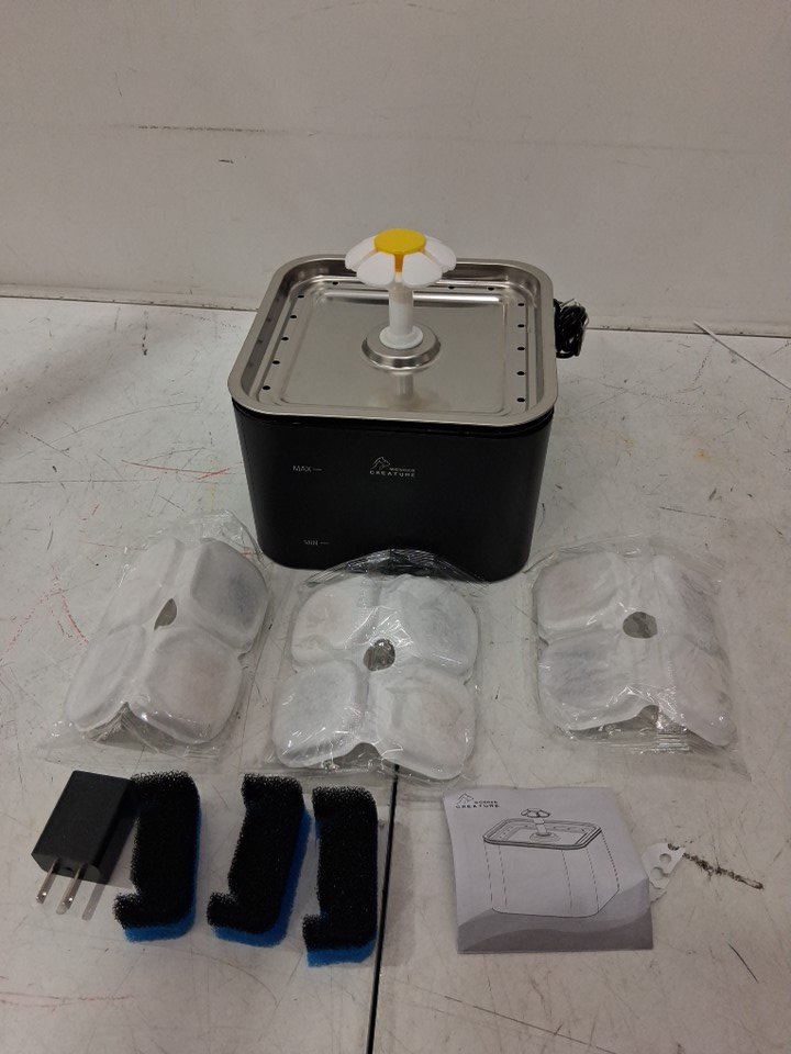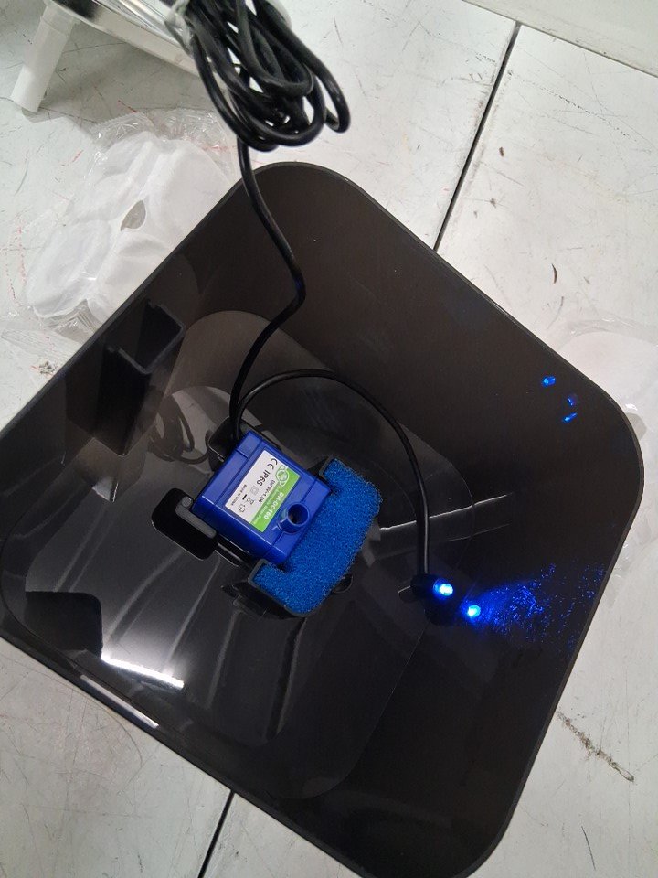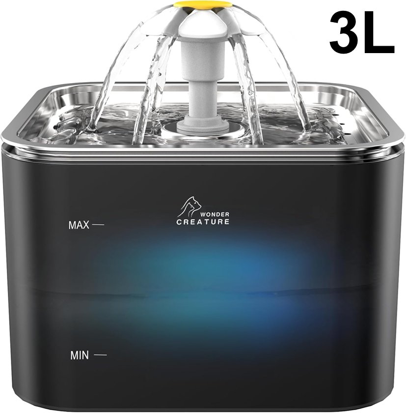 Crystal Cat/pet Stainless Steel Lid Water Fountain with filters/sponges and led light- black