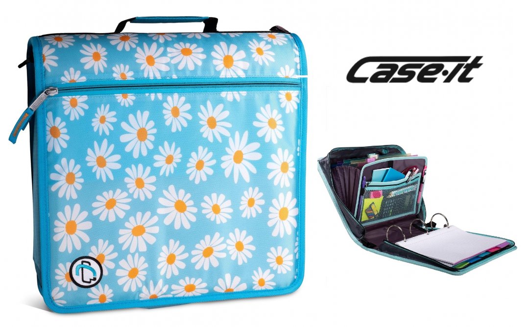 Case-it The Mighty Zip Tab Zipper Binder - 600 Sheet Capacity - Light Blue Daisy (Model: D-146-P)