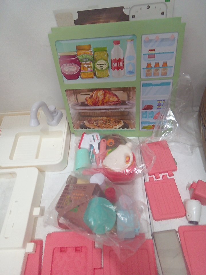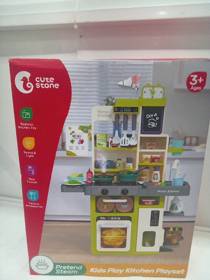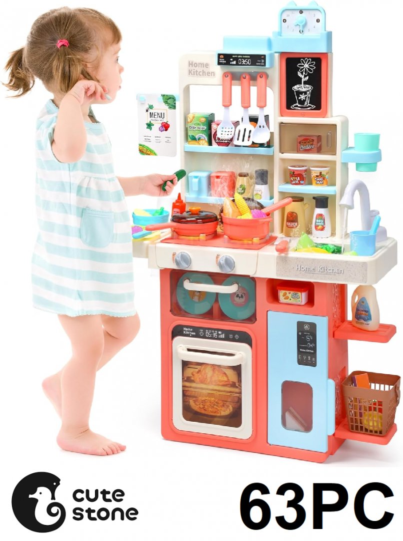 63PC CUTE STONE PRETEND PLAY KITCHEN - WATER SINK - STOVE WITH STEAM LIGHT AND SOUND - PLAY KITCHEN SET WITH POTS, UTENSILS - PINK