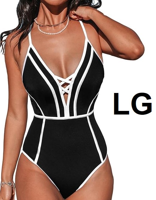 Women's one piece plunging criss cross v neck swim suit - large - black/white