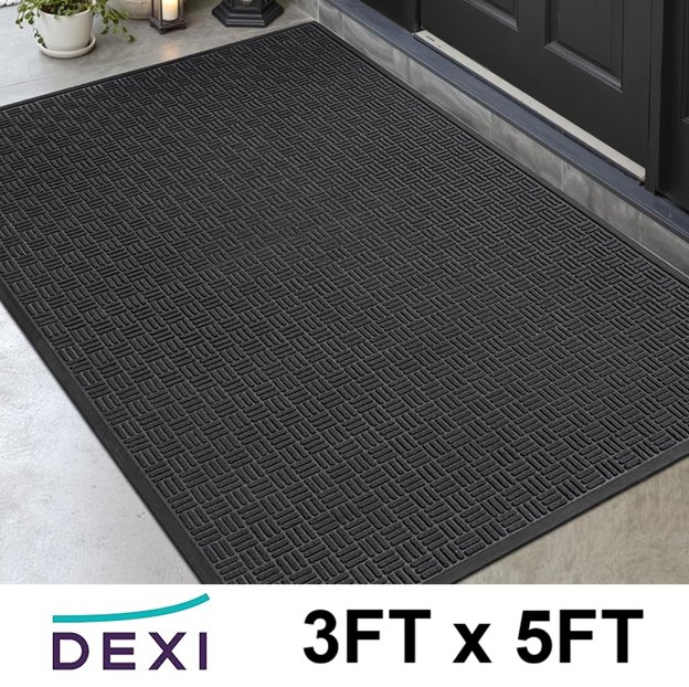 Dexi Waterproof Indoor/Outdoor Non-Slip Dirt Trapper Geometric Mat - 3FT x 5FT - Black