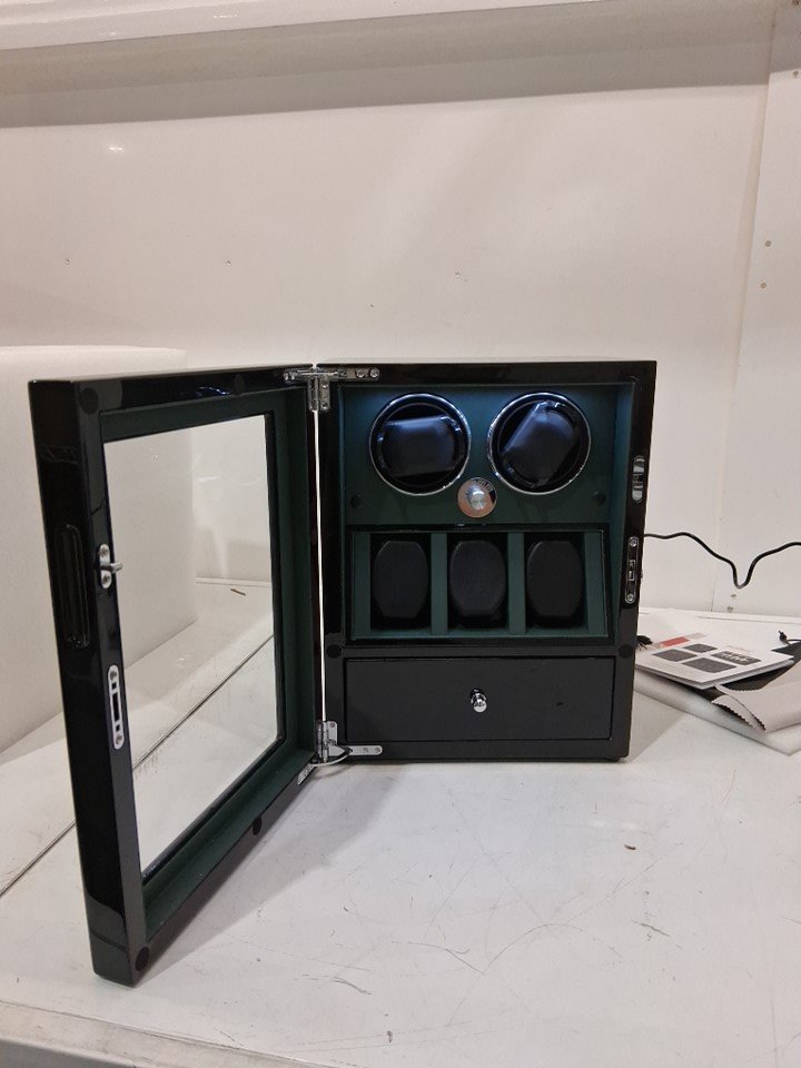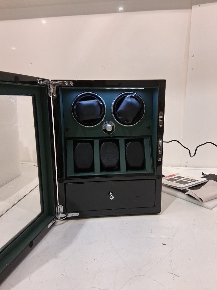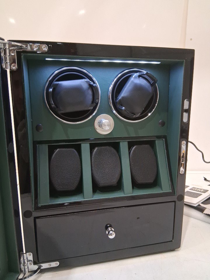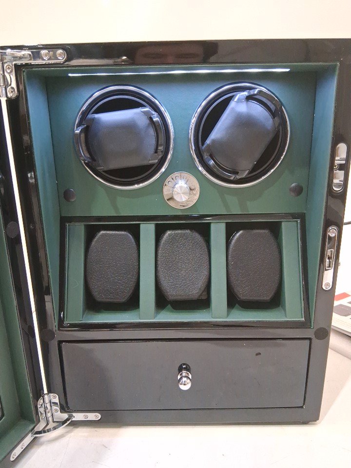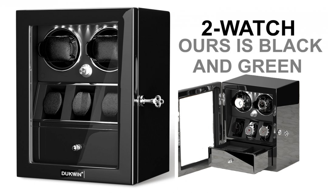 DUKWIN 2-Watch Winding Machine with 3 additional watch storage slots - Black/Green - (Model: YR22C-023)