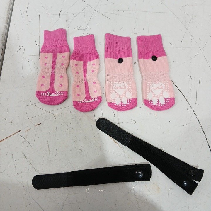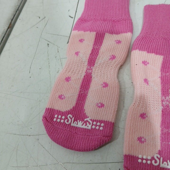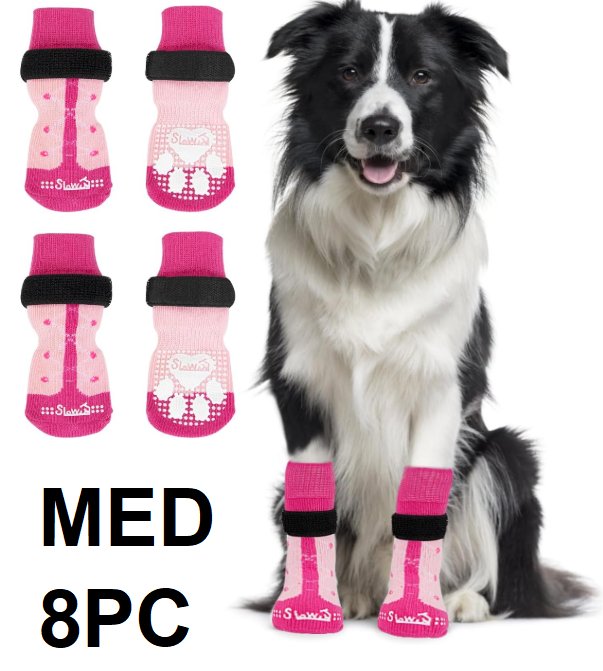 8PC AUTOWT Non-Slip Dog Socks - MEDIUM - PINK/WHITE