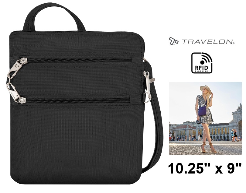 TRAVELON ANTI-THEFT Classic Slim Double Zip Crossbody Bag - 10.25" x 9" - BLACK (model: 43116 500)