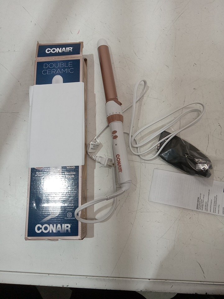 CONAIR DOUBLE TURBO HEAT CERAMIC FLAWLESS WAVES CURLING WAND HAIR STYLER - 1" - WHITE/ROSE GOLD (MODEL: CD705GNC)