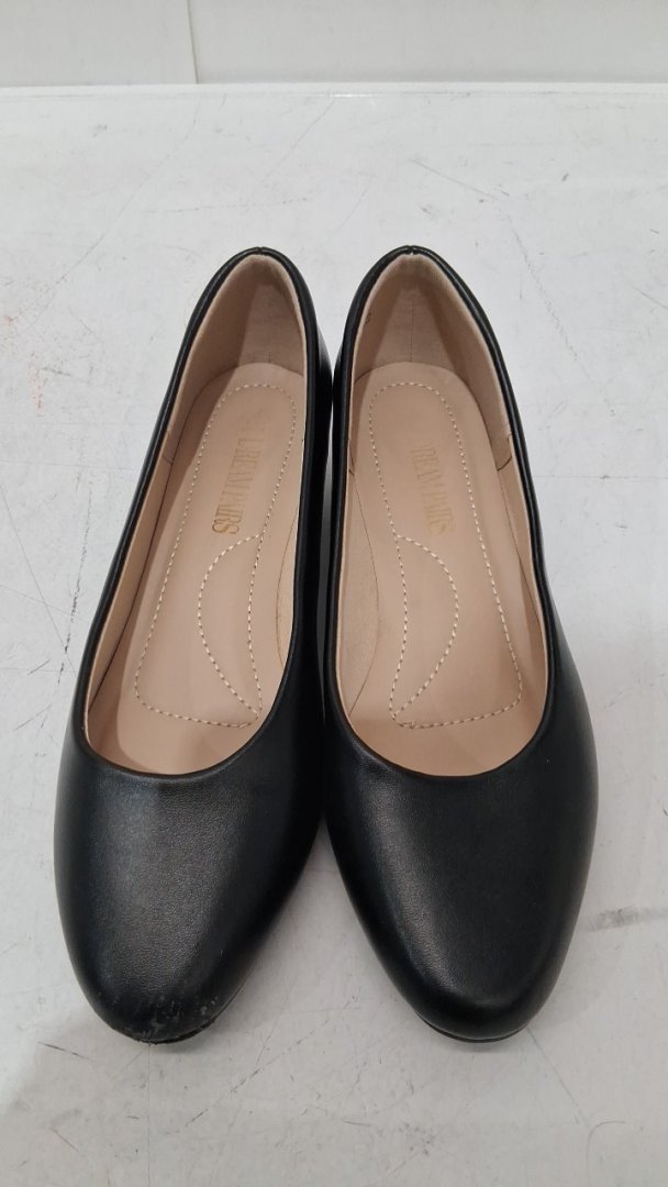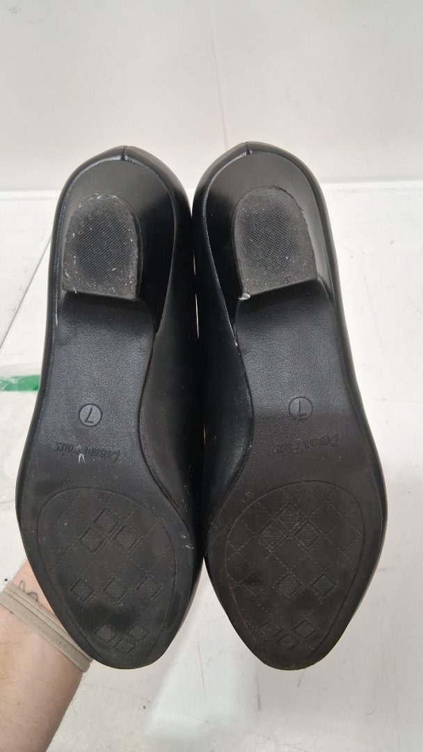 there is some wear on the end of the toe on the right shoe, and the soles have dirt and small amount of wear