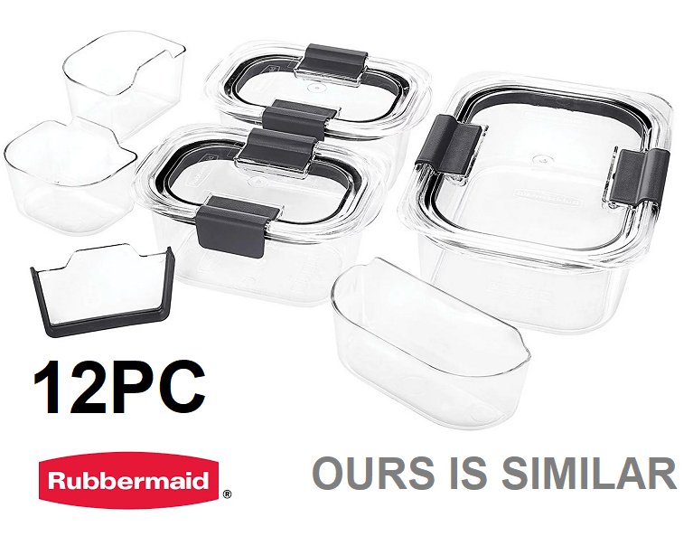 12PC Rubbermaid Food Storage Containers and lids - Clear/GREY