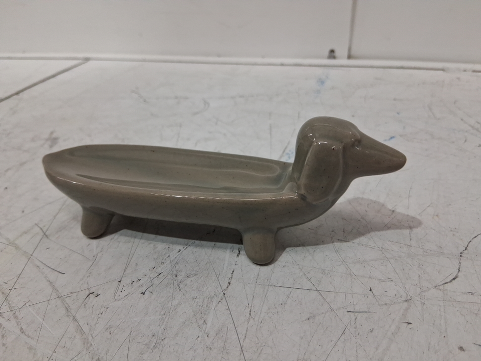creative co-op elongated ceramic dachshund dog dish - 5.5" - grey
