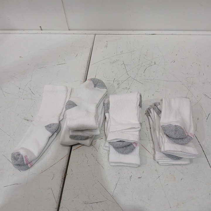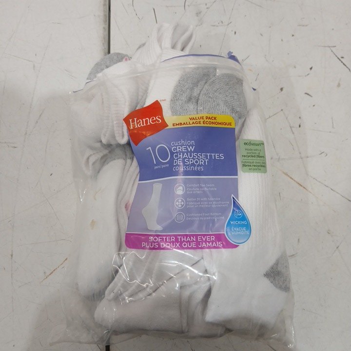 10PK MEN'S HANES CUSHION CREW SOCKS - SIZE 5-9 - WHITE/GREY