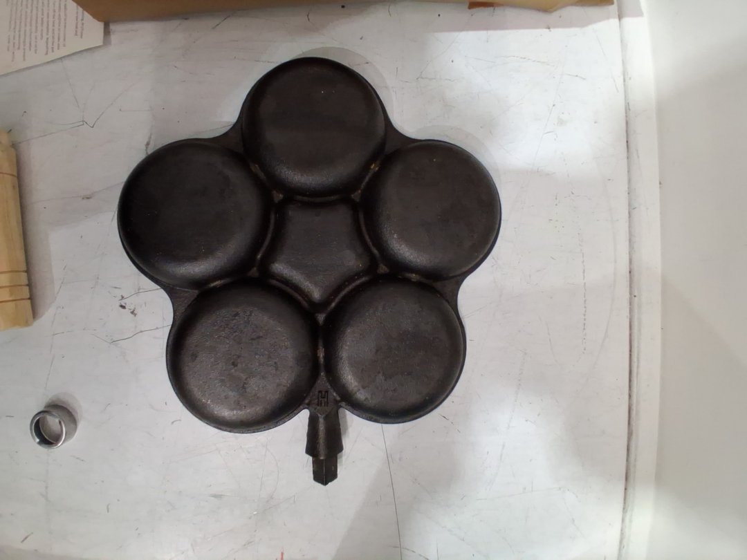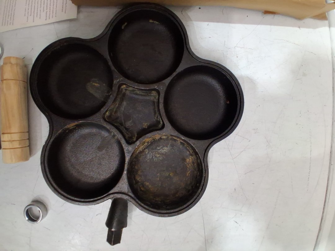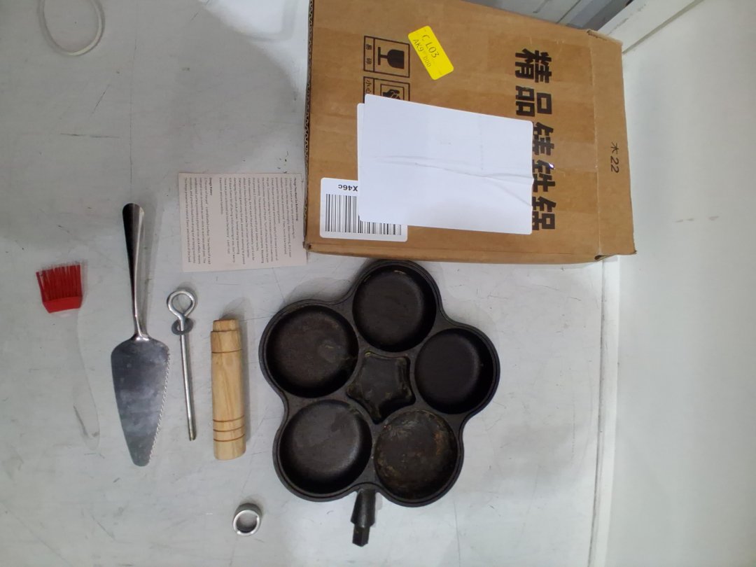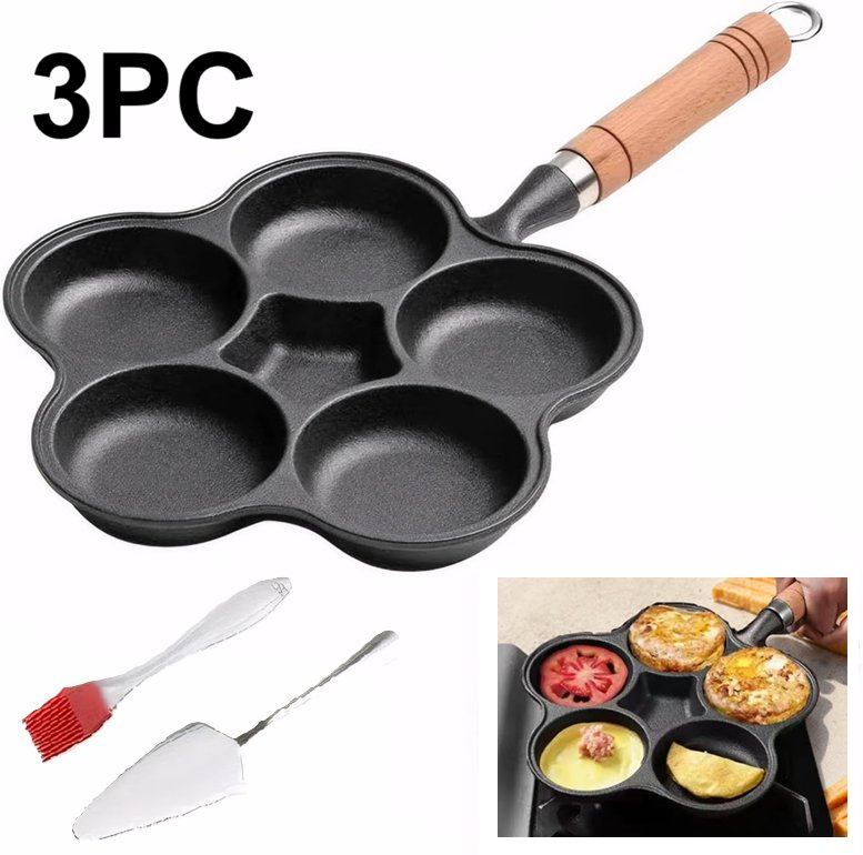 3pc kuci cast iron non-stick frying pan with 5 round holes brush and lifter