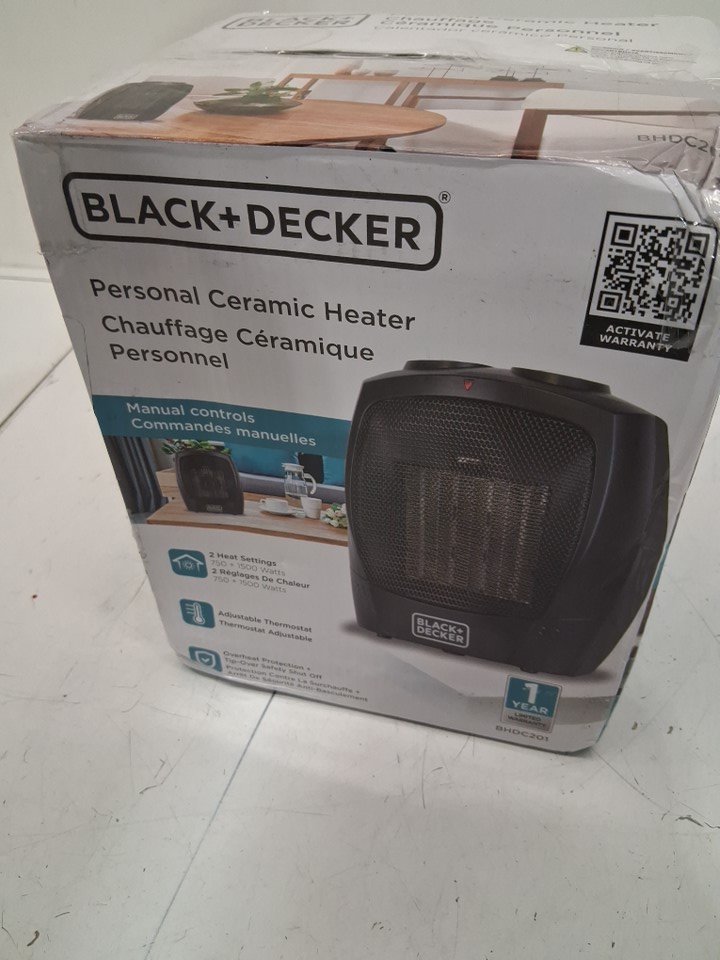 BLACK + DECKER PORTABLE 2-IN-1 SPACE HEATER WITH CARRY HANDLE, OVER-HEAT PROTECTION & TIP-OVER PROTECTION, 1500W - BLACK (MODEL: BHDC201)