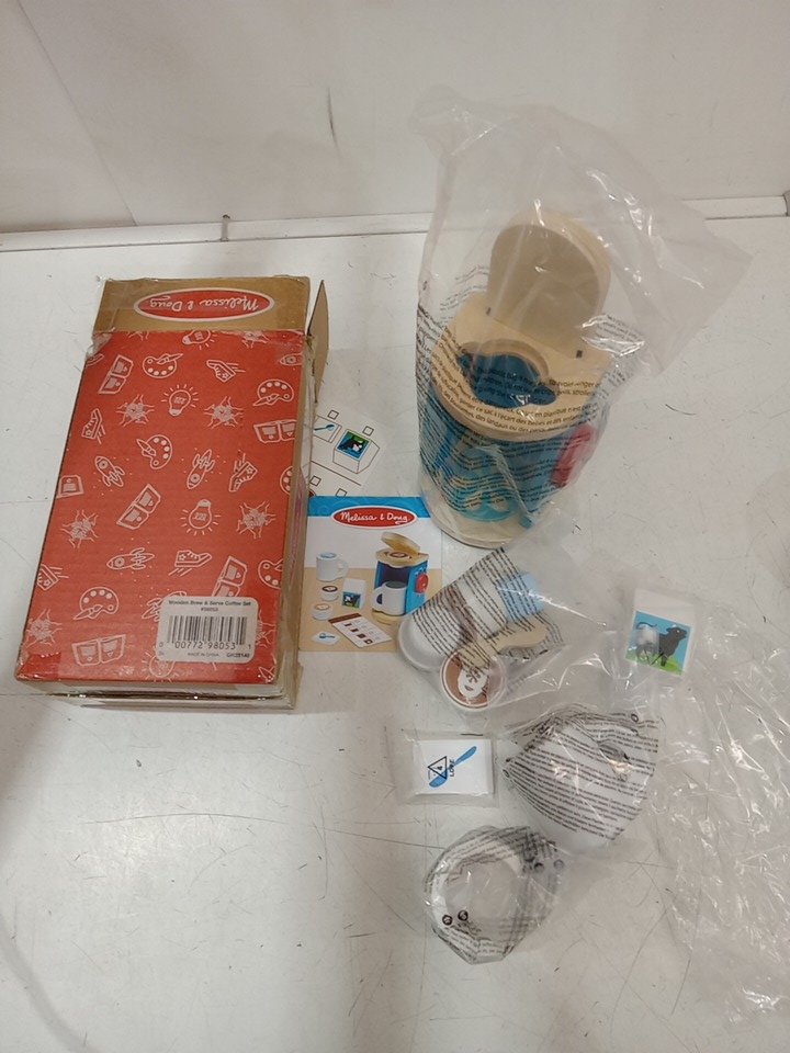 10PC MELISSA & DOUG BREW AND SERVE WOODEN COFFEE PLAY SET (MODEL: 19842)