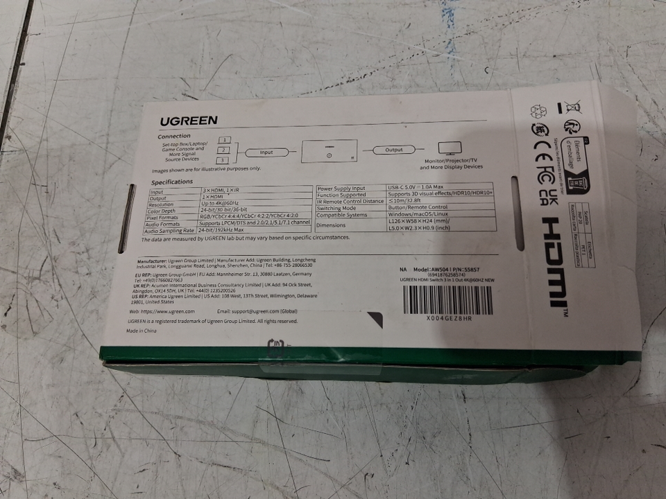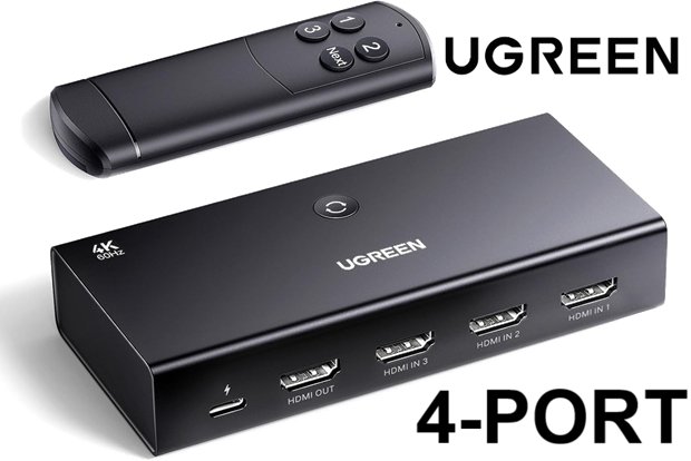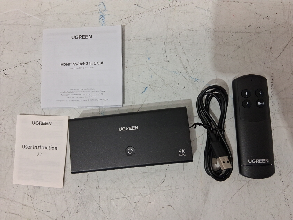 ugreen hdmi switch 3 in 1 out switcher selector box with remote - 4k - 60hz - compatible with ps5/ps4/ps3/xbox/switch/tv - black (model: aw504)