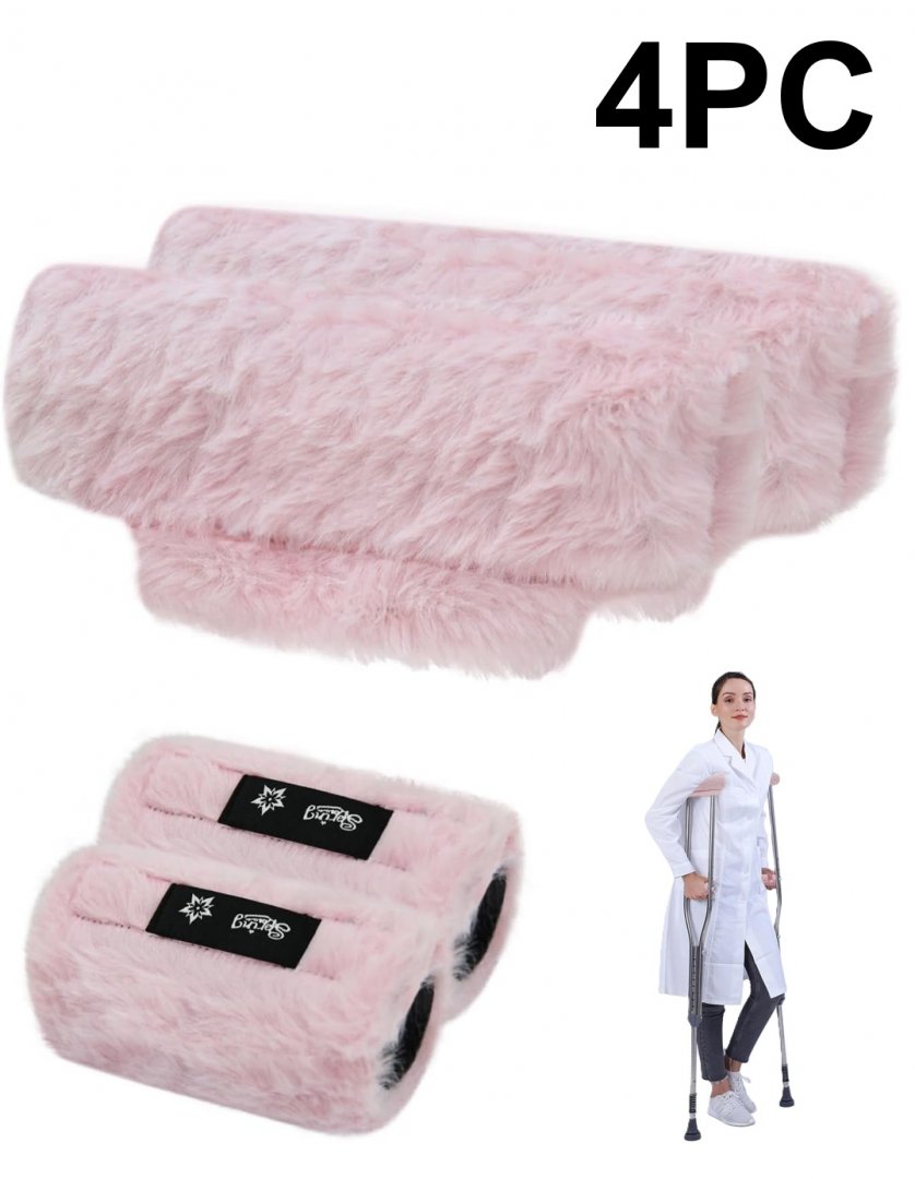 4PC Fluffy Crutch Pads - Universal Fit - Pink