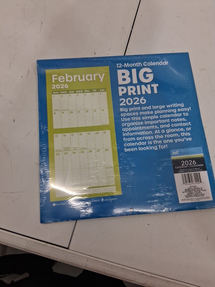 jot 2026 BIG PRINT Month Wall Calendar - 12 months - 12” X 24”- multicolored