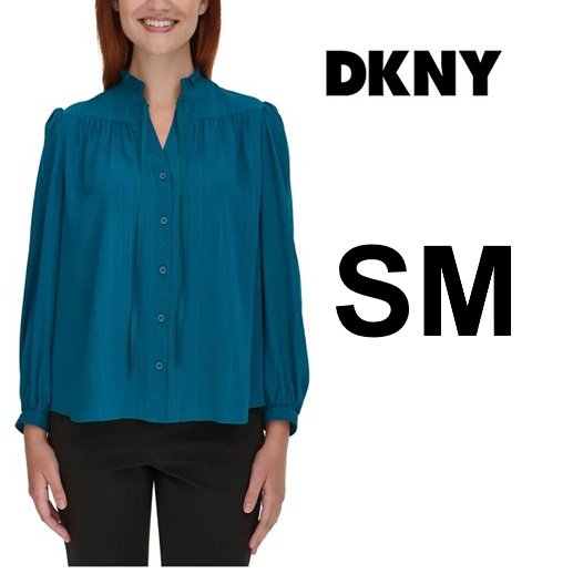 WOMENS DKNY CHEMISE HIGH NECK LONG SLEEVE BLOUSE - small - TEAL - (STYLE: 381100)