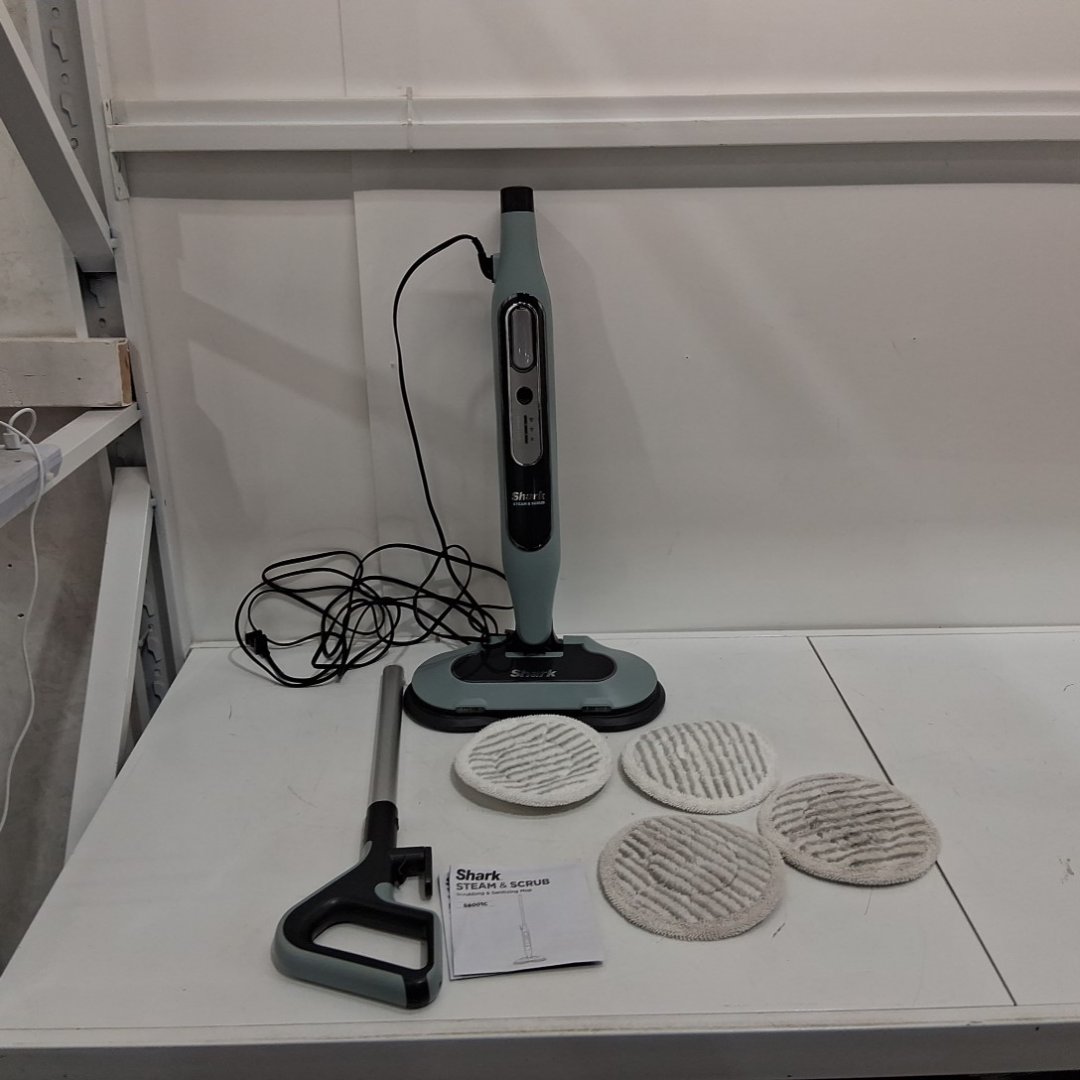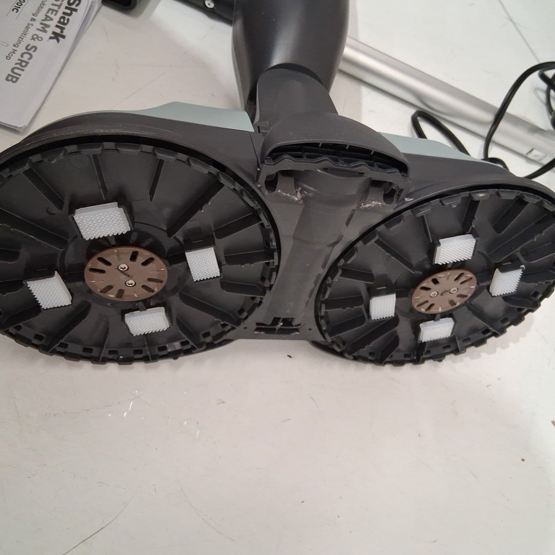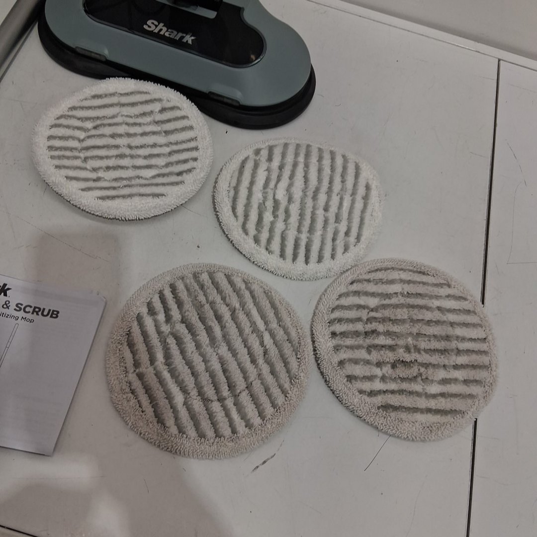 There is light dirt/debris on 2 of the steam pads from previous use. The water tank has some residual water left in it as well. Tested for power.