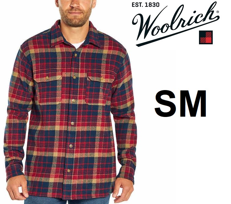 men's Woolrich Flannel long sleeve shirt jacket - small - Red/brown plaid - (style: 1719160)