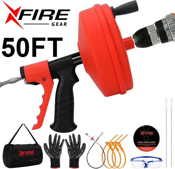 11-in-1 Double Mode plumbing Drain Snake/Drain Auger Tools - 50 FT - orange