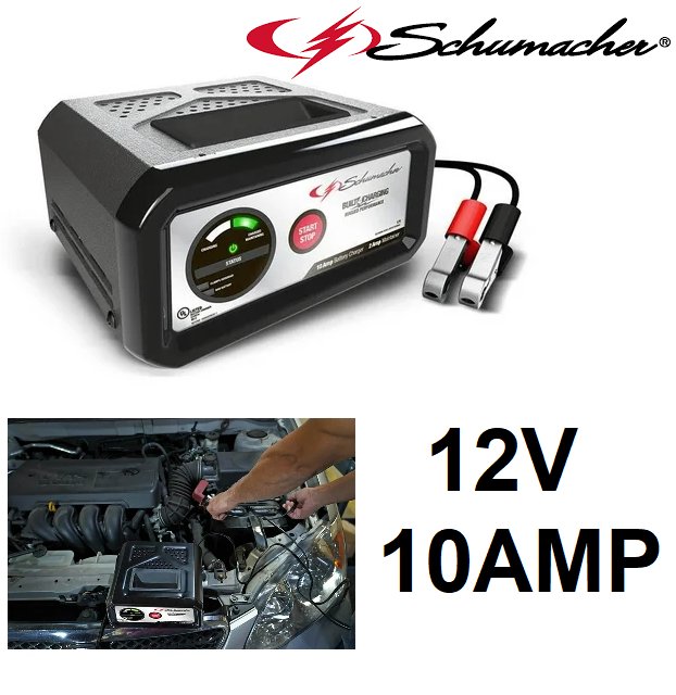 schumacher electric 3 in 1 car battery charger and maintainer - 12v - 10amp - black (model: sc1282)