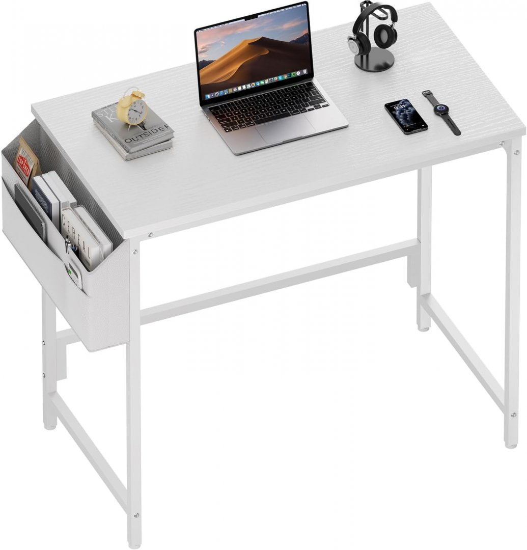 HLDIRECT Computer Desk with Storage Bag Home Office Desks for Small Spaces - 32"X20" - WHITE (MODEL: 12025WH)