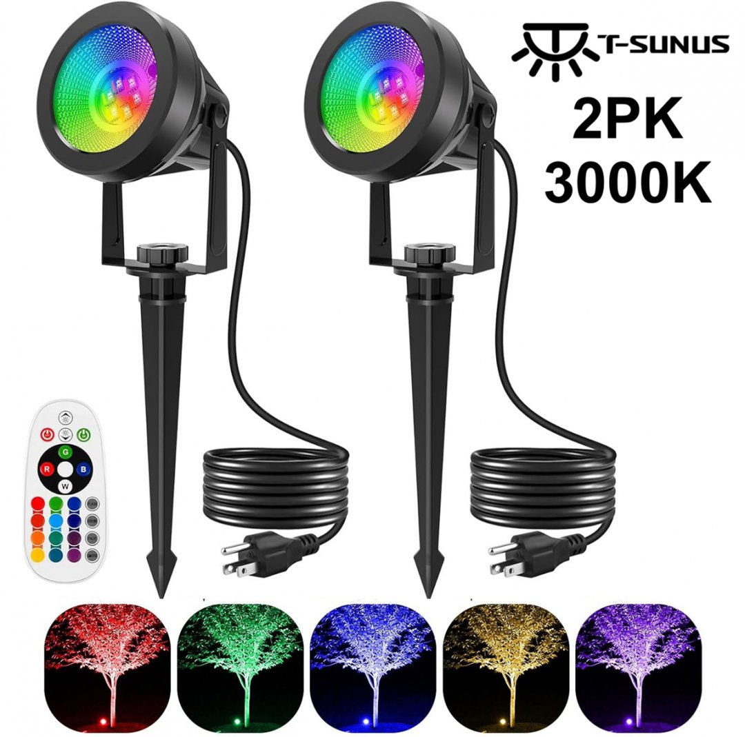 2PK T-SUNUS IP75 Waterproof RGB LED Landscape Lights - 3000K - Black (Model: TS-F2020)