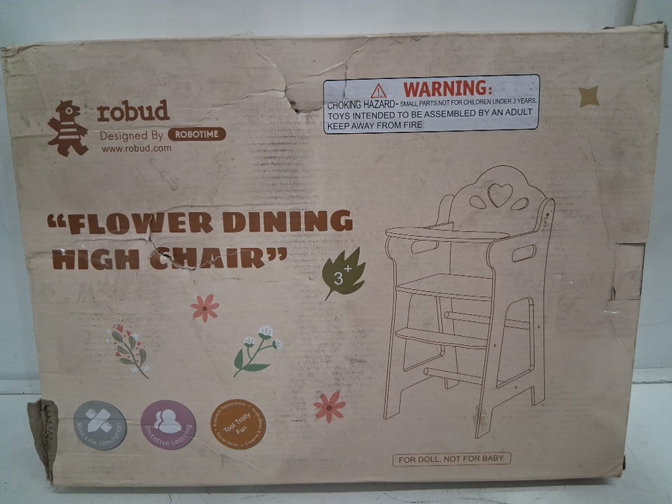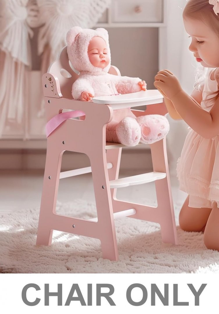 ROBOTIME Baby Doll High Chair With Safety Belt and Footrest - 20" x 11" - Pink/White (Model: WRP22)