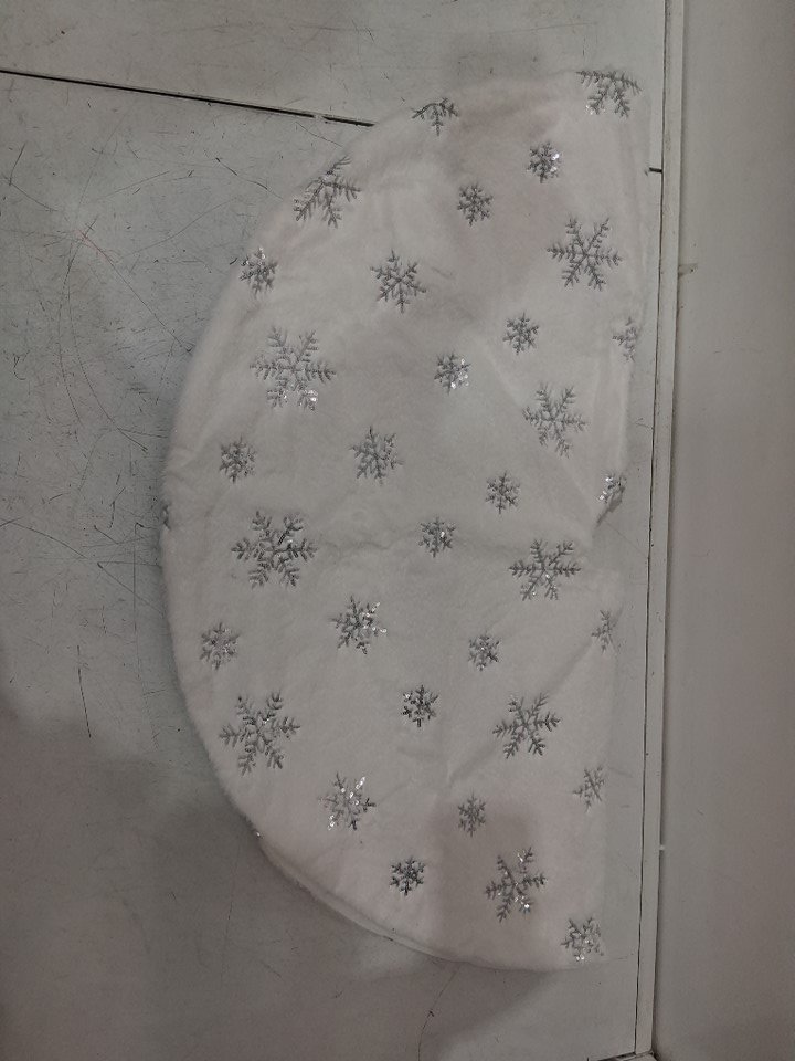 unbranded FAUX FUR SNOWFLAKE CHRISTMAS TREE SKIRT with sequins - 36" ROUND - WHITE/SILVER