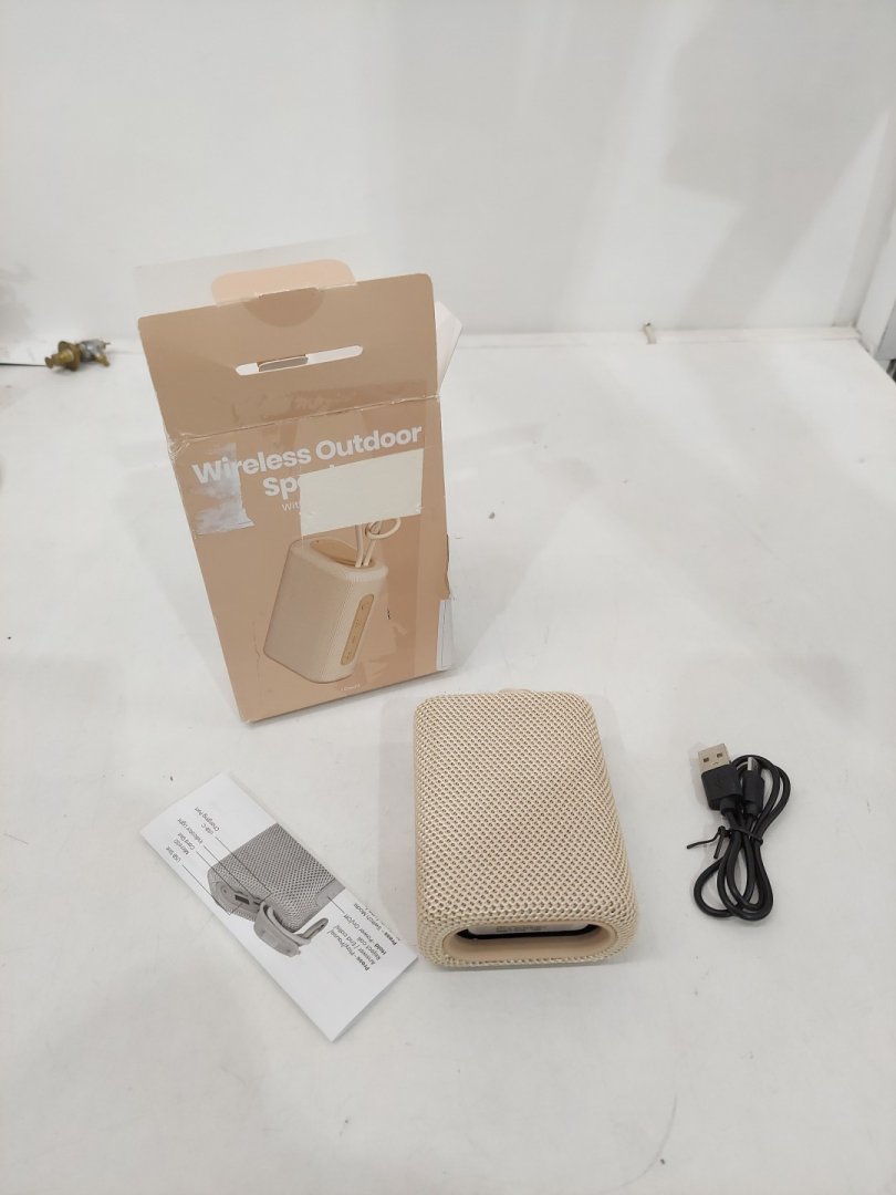 gems WIRELESS OUTDOOR SPEAKER with carabiner and built in buttons - 2hr run time - BEIGE
