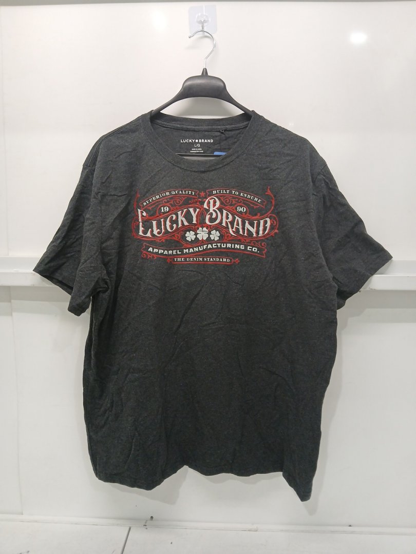 MEN'S LUCKY BRAND GRAPHIC CREW NECK TSHIRT - LARGE - GREY