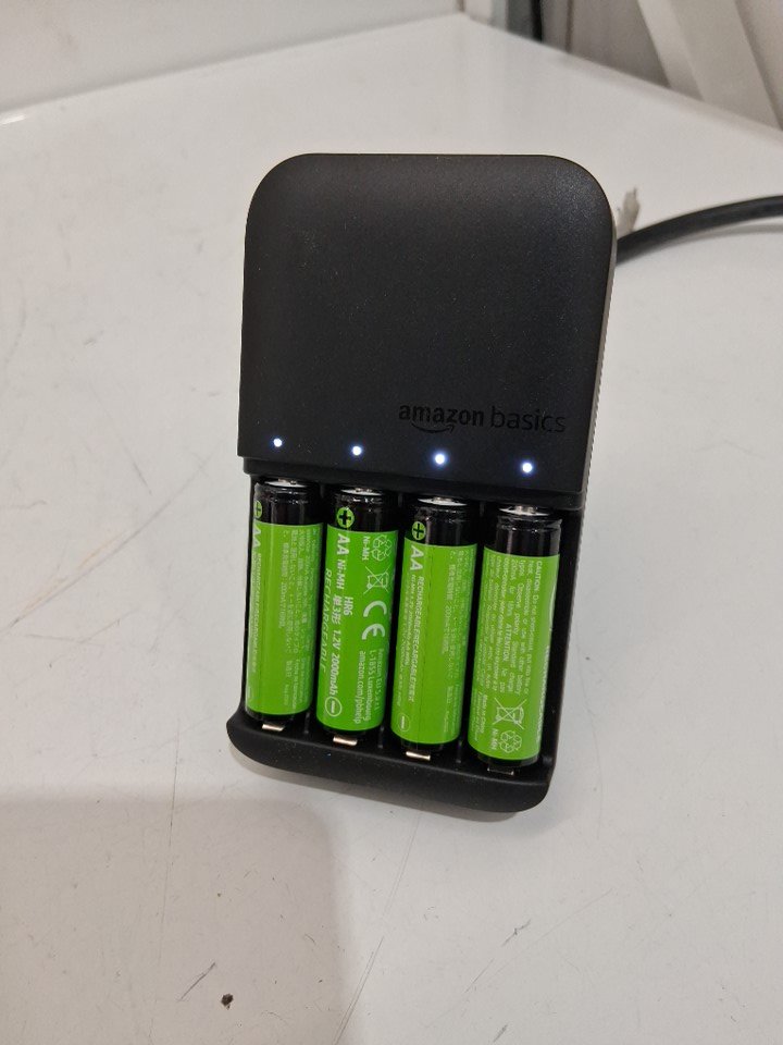 Amazon Basics Rechargeable AA Batteries NiMH (x4) with 4 Bay Battery Charger - black (model: HFR-AA2000-HPTCH0033)