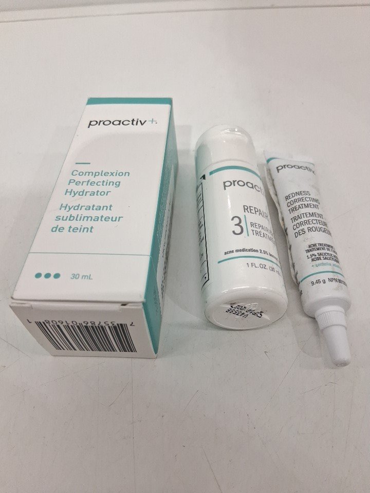 3 proactiv+ products - assorted sizes and types - complexion perfecting hydrator / repairing treatment / redness correcting treatment