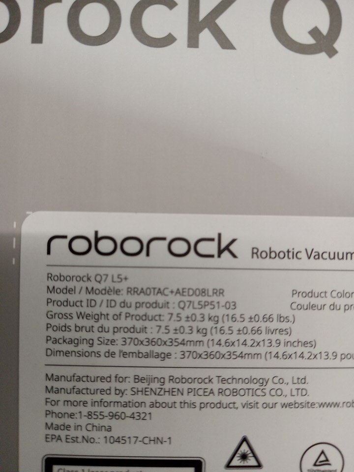 Roborock Q7 Series L5+ Robot Vacuum and Mop - Self-Emptying, 8000PA Suction, 150mins Runtime - Black (Model: RRA0TAC+AED08LRR)