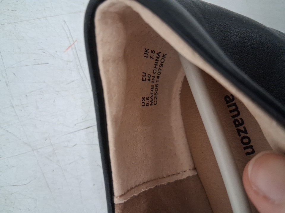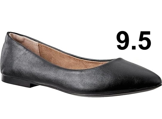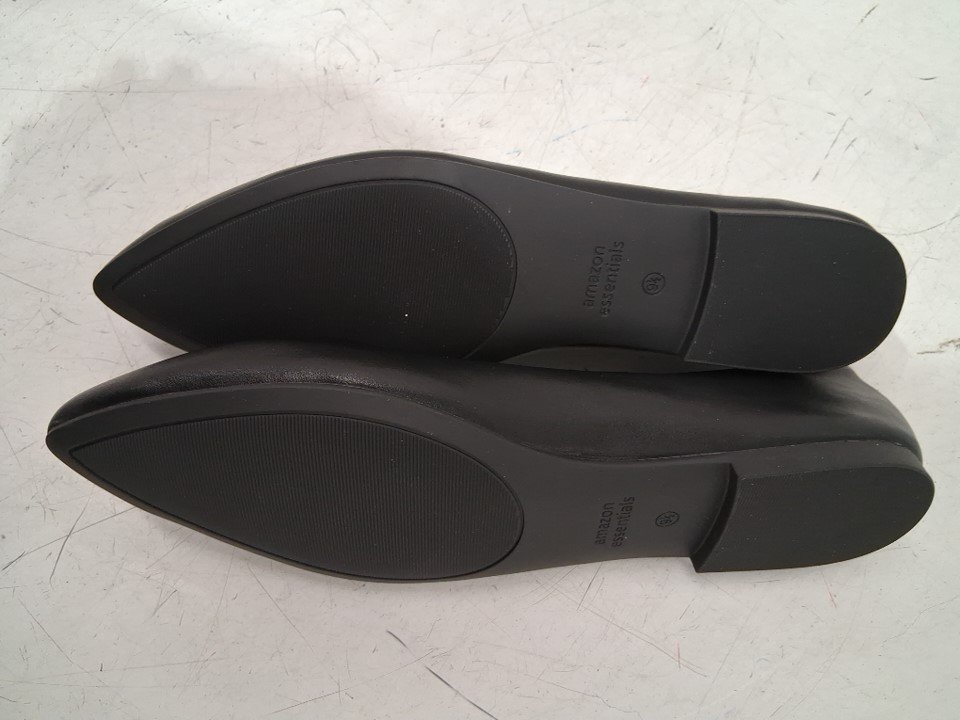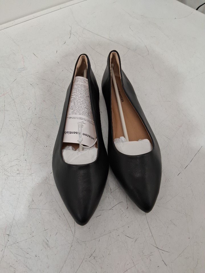 Women's Amazon Essentials Pointed-Toe FAUX LEATHER Ballet Flat- size 9.5 - black