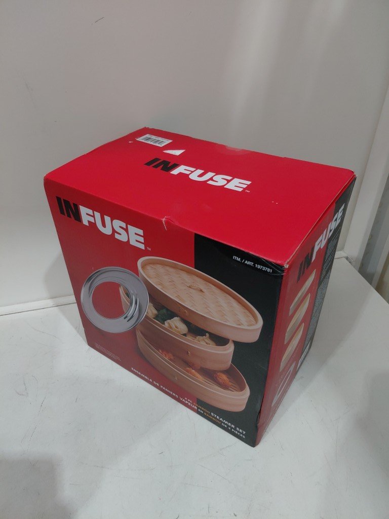 4pc infuse bamboo steamer set - 10" - natural/silver (model: 1973781)