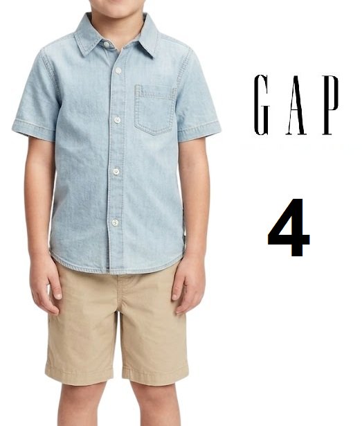 boy's gap BUTTON DOWN short sleeve denim shirt - size 4 - light blue (style: 6041212)