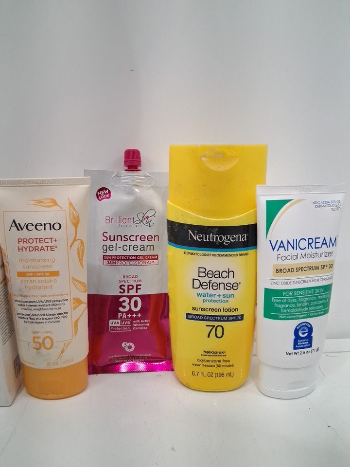 8 Assorted sunscreens products - assorted types and brands