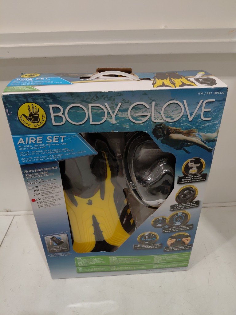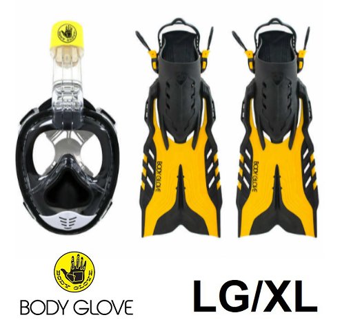 adult body glove aire snorkeling mask & fins set - large/extra large - black/yellow (MODEL: 1324422)
