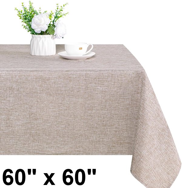 Square Faux Linen Wrinkle Free and Washable Tablecloth - 60" X 60" - dark khaki/white