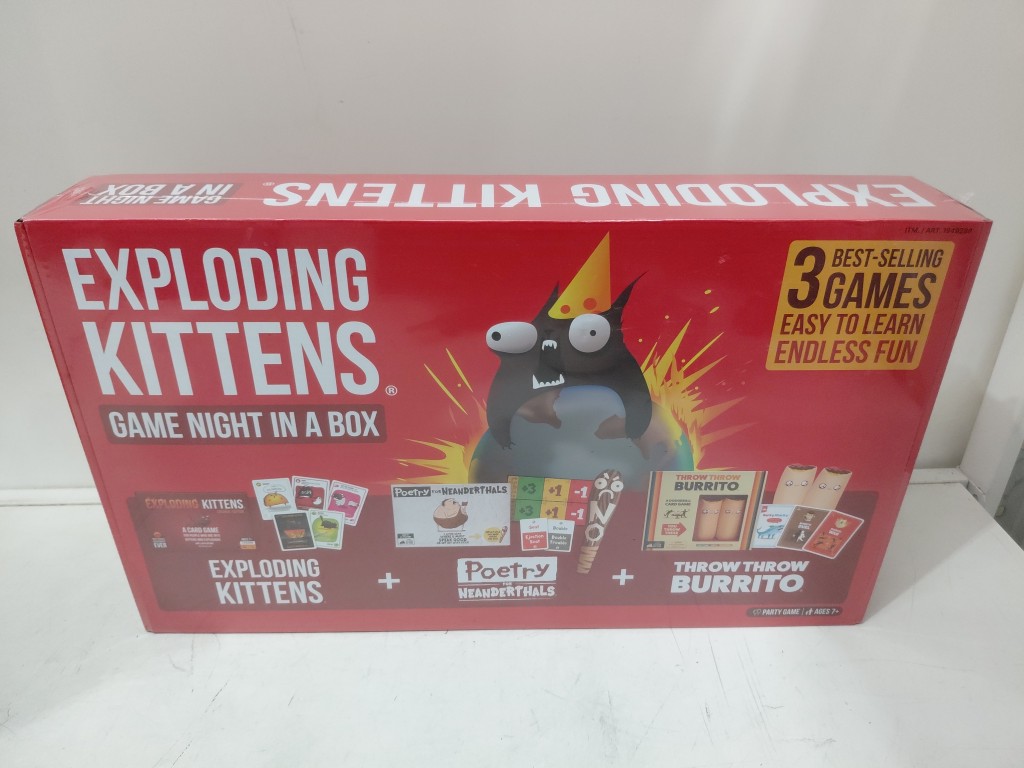 Exploding Kittens Game Night in a Box 3-in-1game kit- party game, ages 7+ -( model:1949288)