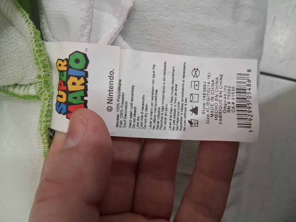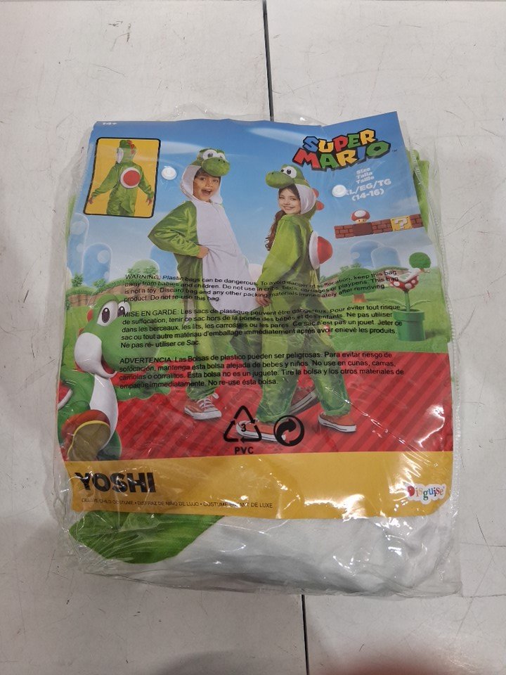 2pc unisex kids disguise super mario yoshi deluxe child costume with jumpsuit and shell - extra-LARGE - green/white/red (MODEL: 146389J)