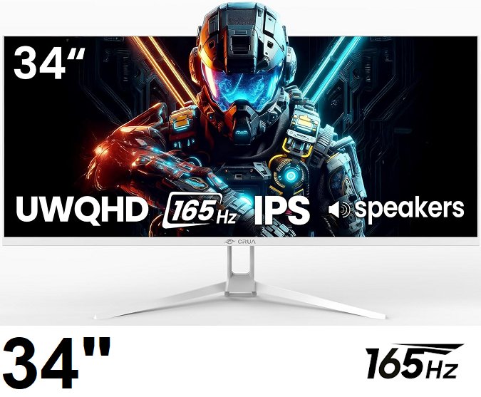 CRUA Ultrawide Gaming Monitor with Built-in Speakers - 34" - 165HZ - white (MODEL: CR340D)