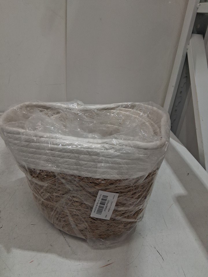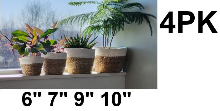 4pc HAKZEON Seagrass Woven Planter Basket- 6" /7" /9" /10"-Brown/white